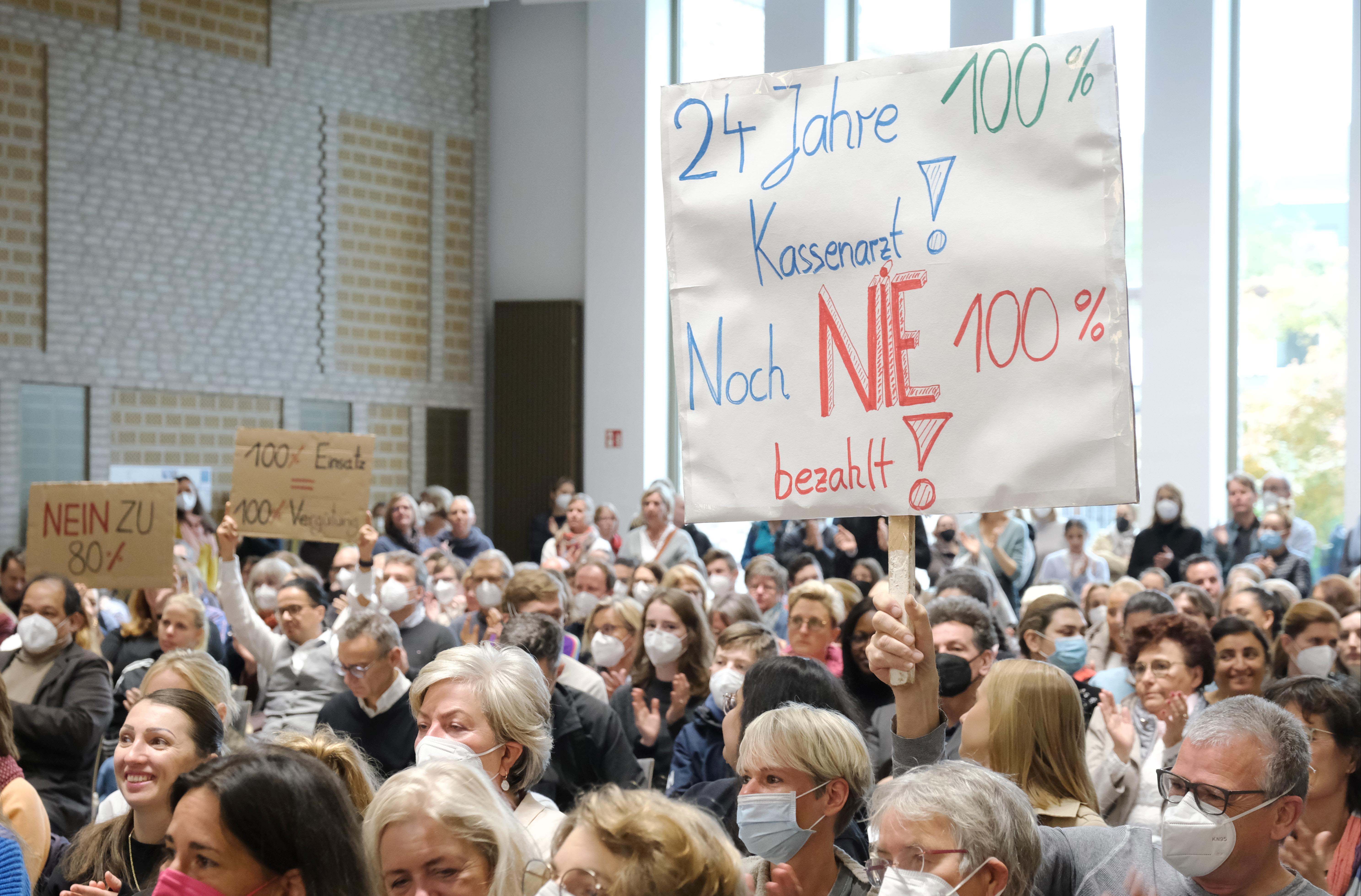 Zahlreiche Praxen sind am Mittwochvormittag in Hamburg geschlossen geblieben – aus Protest gegen die Sparpolitik des Bundesgesundheitsministers. Rund 1300 Ärztinnen und Ärzte samt Praxisteams nahmen an einer Fortbildungsveranstaltung mit dem renommierten Referenten für Notfallmedizin Dr. Sven-Peter Augustin in den Räumlichkeiten der KV Hamburg teil: „Der Notfall in der Praxis – die Praxis als Notfall?“ Die Fortbildungsveranstaltung fand während der regulären Praxisöffnungszeiten statt. Viele Teilnehmerinnen und Teilnehmer zeigten Transparente, mit denen sie auf die verheerenden Folgen einer fehlgeleiteten Politik aufmerksam machten.